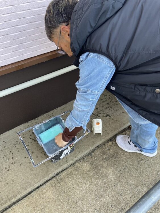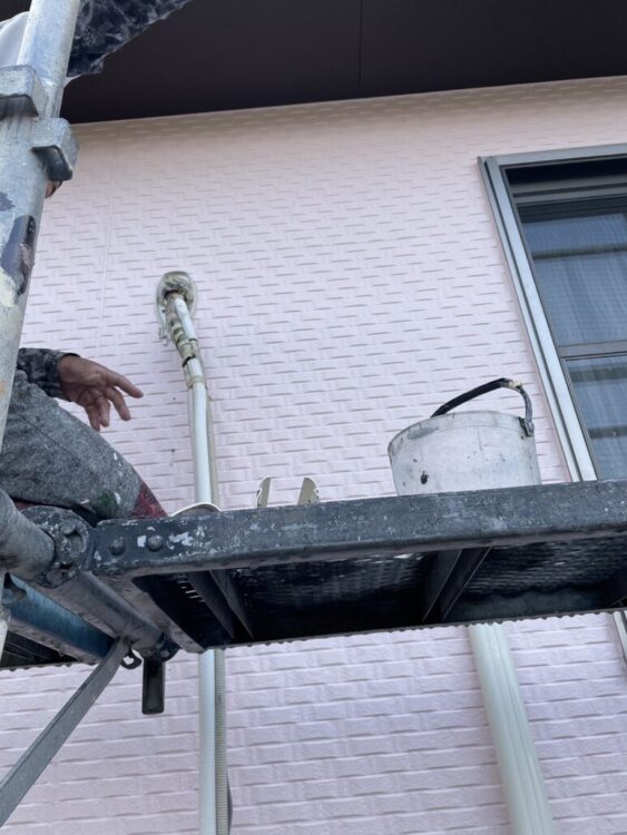 外壁を塗る時、弊社ではこんな風にスリムダクトなど外せるものはすべて外して塗装します👍